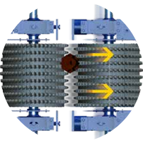 獨特的齒輥結構,瞬間劈破,高比例有效破碎,不重復過粉碎,確保粒徑合格,實現高效節能。